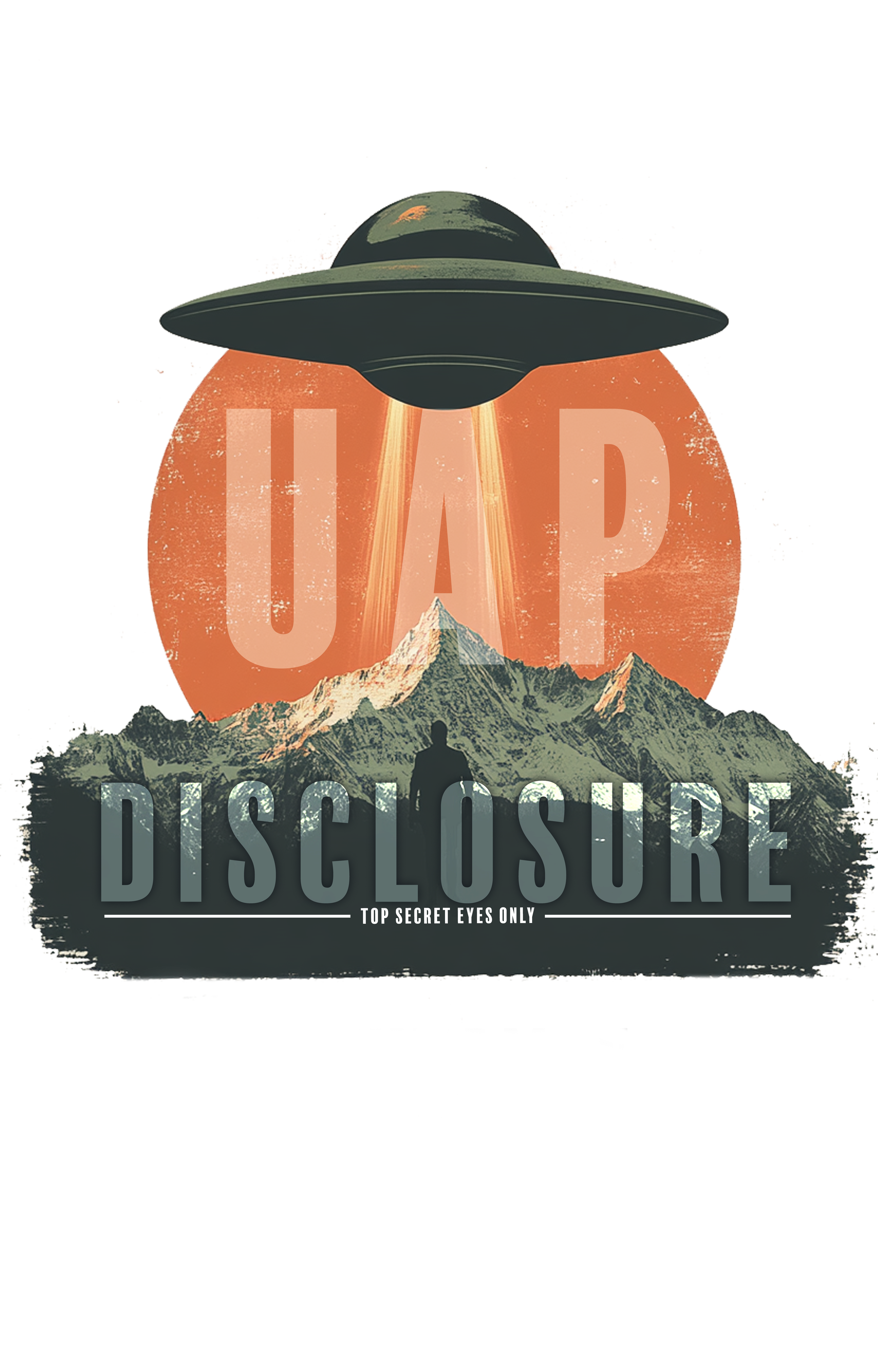The UAP Horizon Disclosure Sweatshirt captures a powerful moment of stillness beneath the unknown. Featuring a minimalist UAP graphic hovering above a mountain landscape, framed by a bold sun and the word Disclosure, this design symbolises perspective, awareness, and the quiet pull of curiosity. It’s a visual reminder to look beyond the obvious and stay open to what lies ahead.