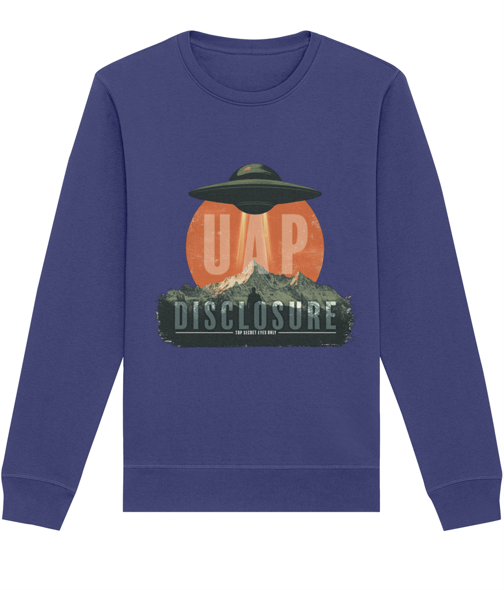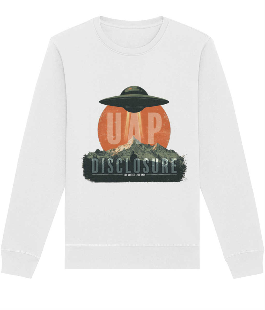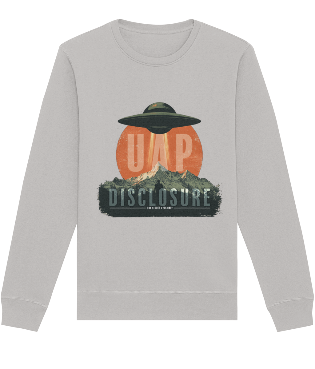 Designed with a relaxed, comfortable fit, this sweatshirt is ideal for everyday wear while still making a strong statement. Available in a variety of colours, it allows you to choose the shade that best suits your personal style while keeping the message clear and intentional. Perfect for fans of UFO and UAP culture, disclosure-inspired clothing, and modern streetwear, this unisex graphic sweatshirt pairs effortlessly with jeans, cargos, or layered outfits. Calm, confident, and quietly bold — this is disclosure, worn your way.