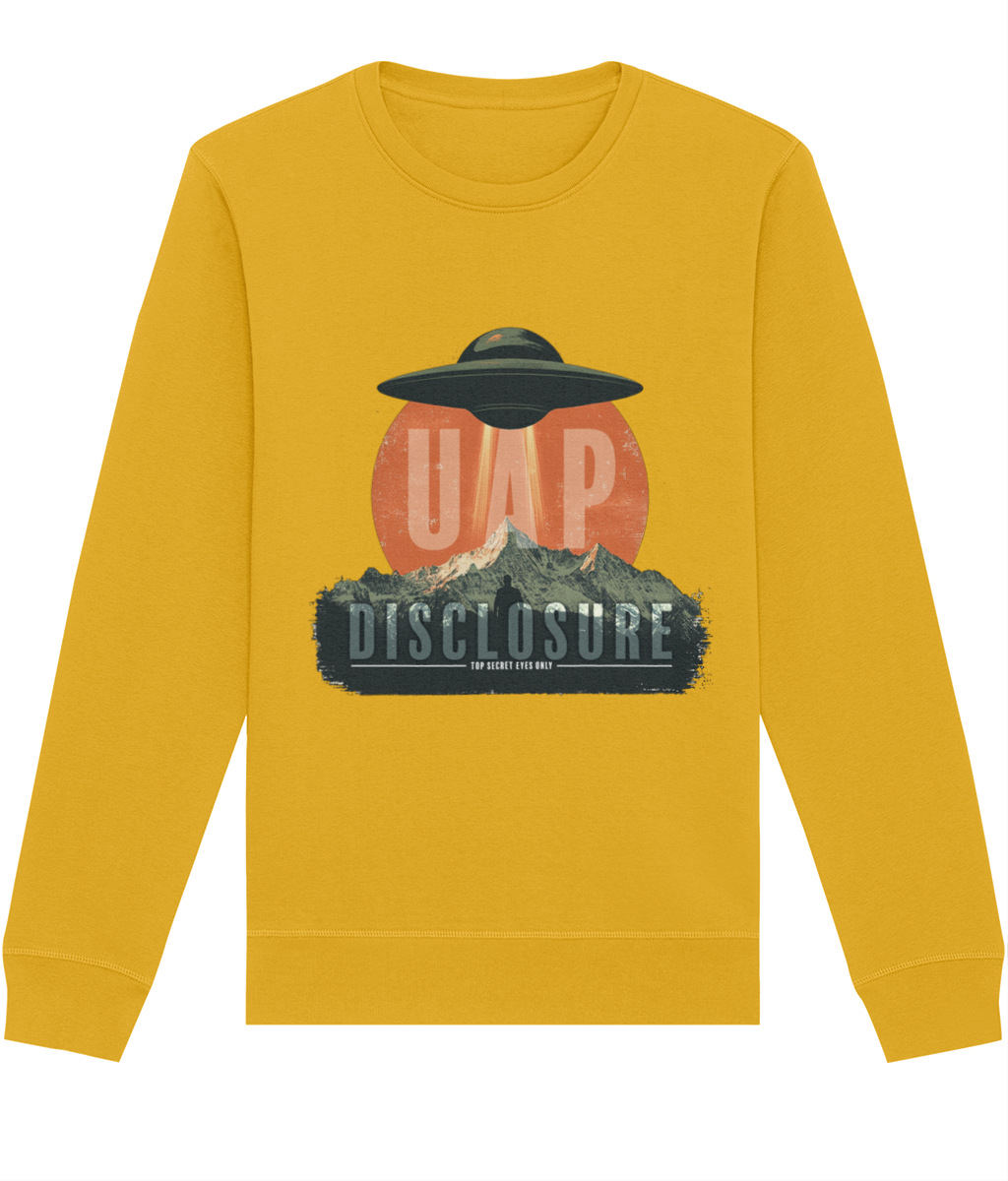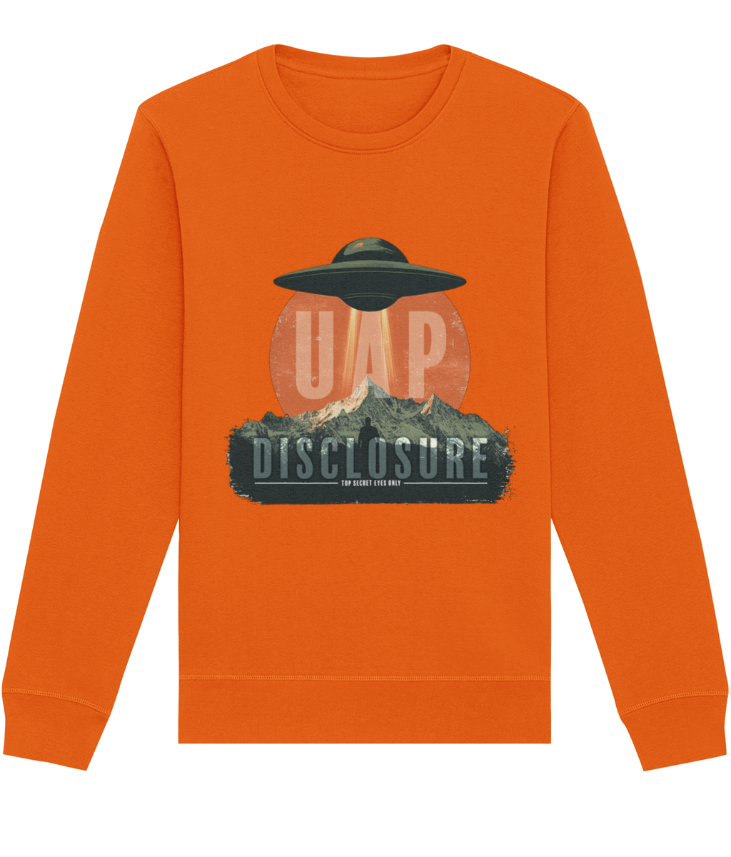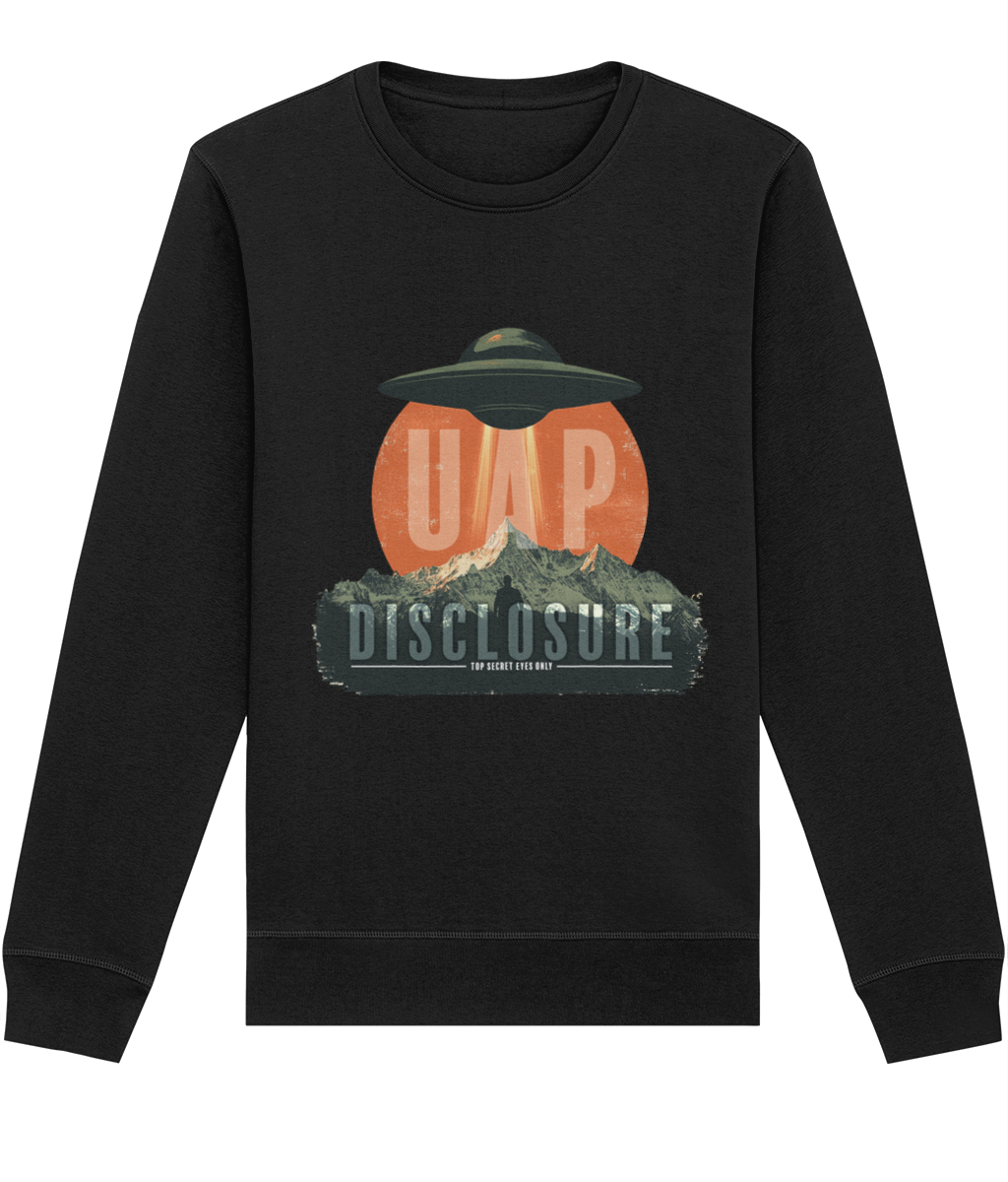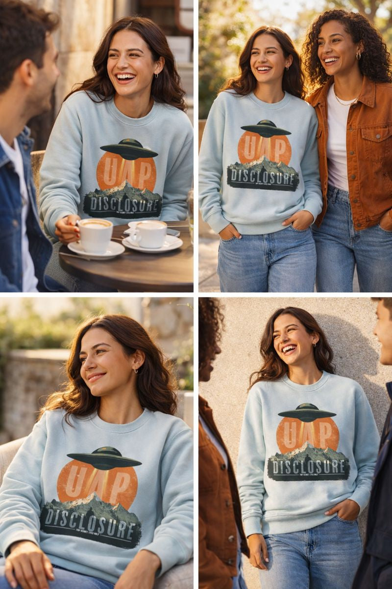 Designed with a relaxed, comfortable fit, this sweatshirt is ideal for everyday wear while still making a strong statement. Available in a variety of colours, it allows you to choose the shade that best suits your personal style while keeping the message clear and intentional. Perfect for fans of UFO and UAP culture, disclosure-inspired clothing, and modern streetwear, this unisex graphic sweatshirt pairs effortlessly with jeans, cargos, or layered outfits. Calm, confident, and quietly bold — this is disclosure, worn your way.